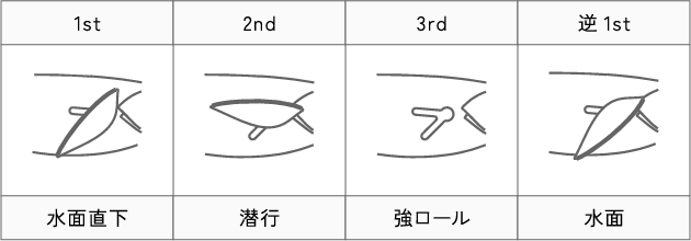 「Qlip1st」での潜行深度の目安は「1st→0m、2nd→1m、3rd→2m」です。