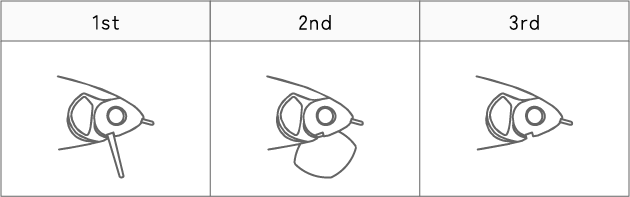 リップが浮き上がった状態です。リップを回転するか、取り外す場合は真っすぐに引き抜いてください。