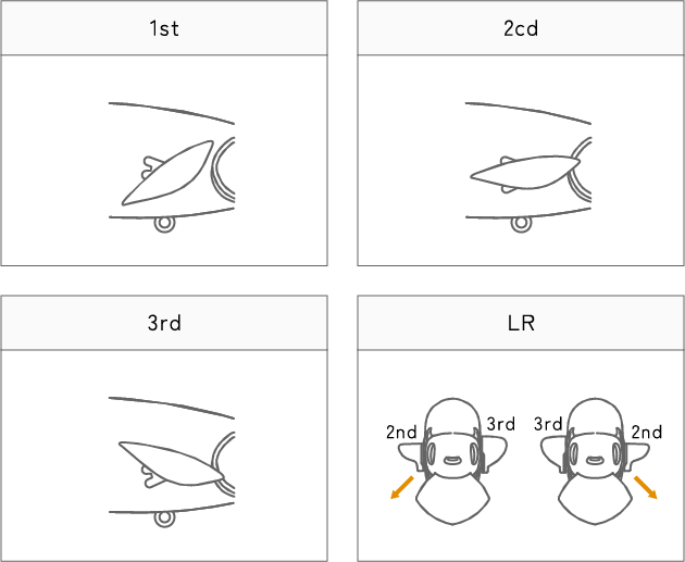 両ヒレ、またはどちらか一方を前方にスライドしてください。